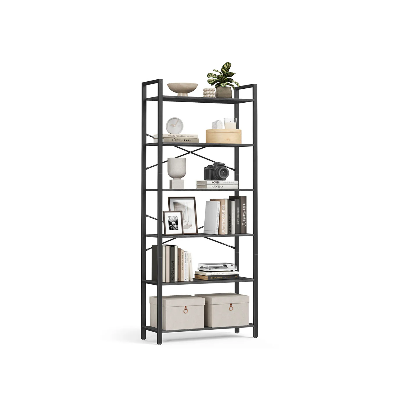 Hohes Bücherregal mit Stahlrahmen, Industriestil