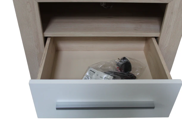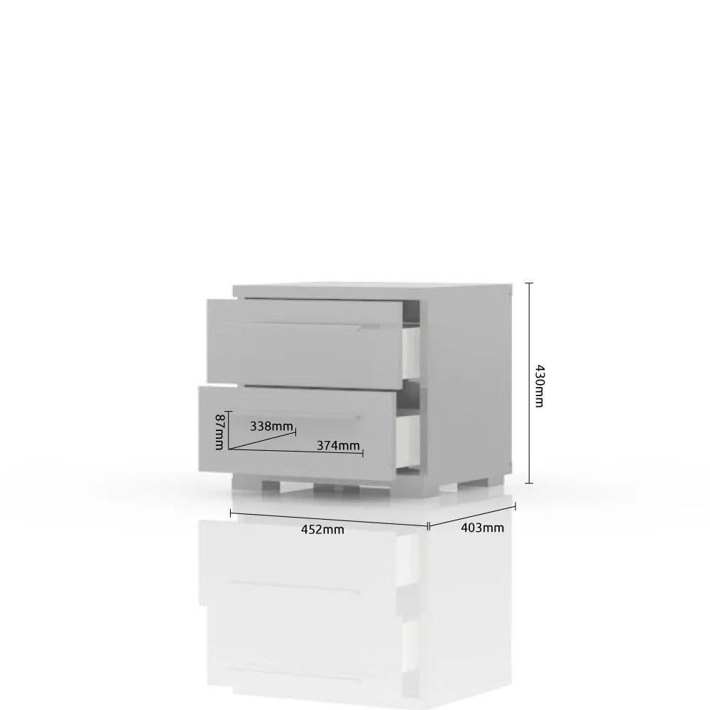 Hochglanzbeiger Klaviernachttisch mit 2 Schubladen, 45 cm breit