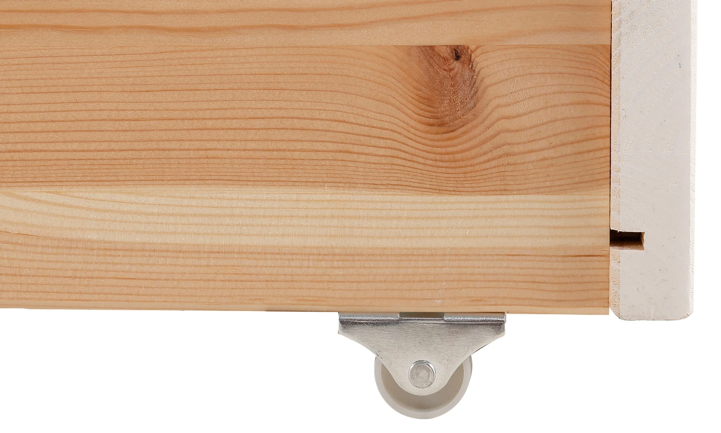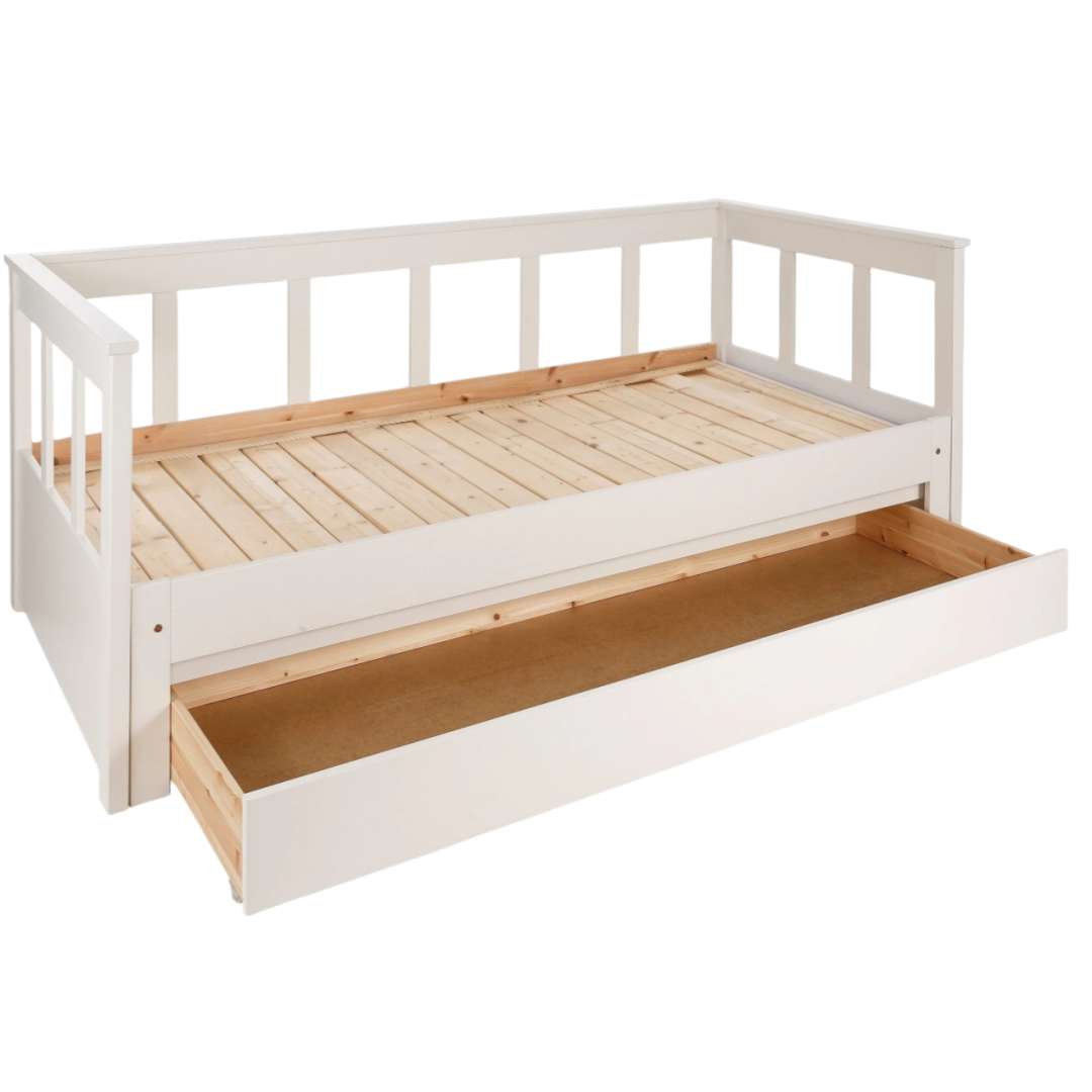 Aira-Bettkommode, aus massivem Kiefernholz, weiß lackiert