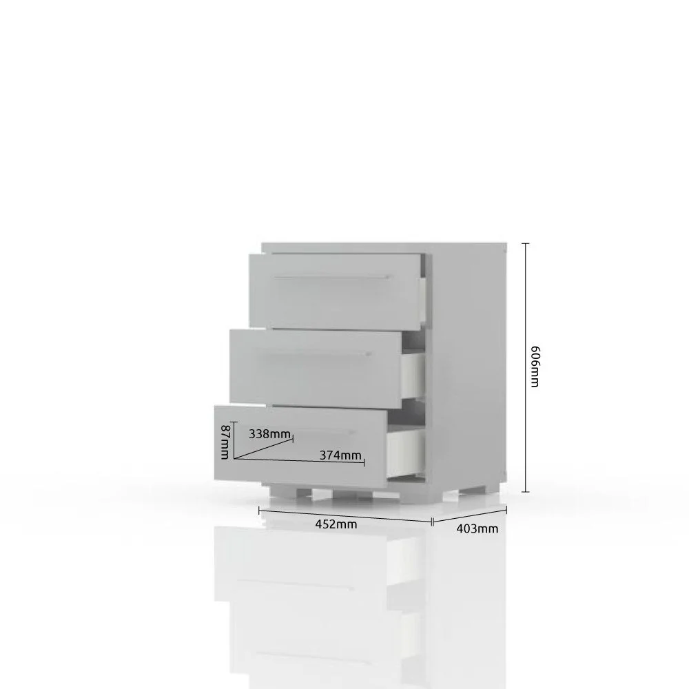 Hochglanzbeiger Klaviernachttisch mit 3 Schubladen, 42 cm breit
