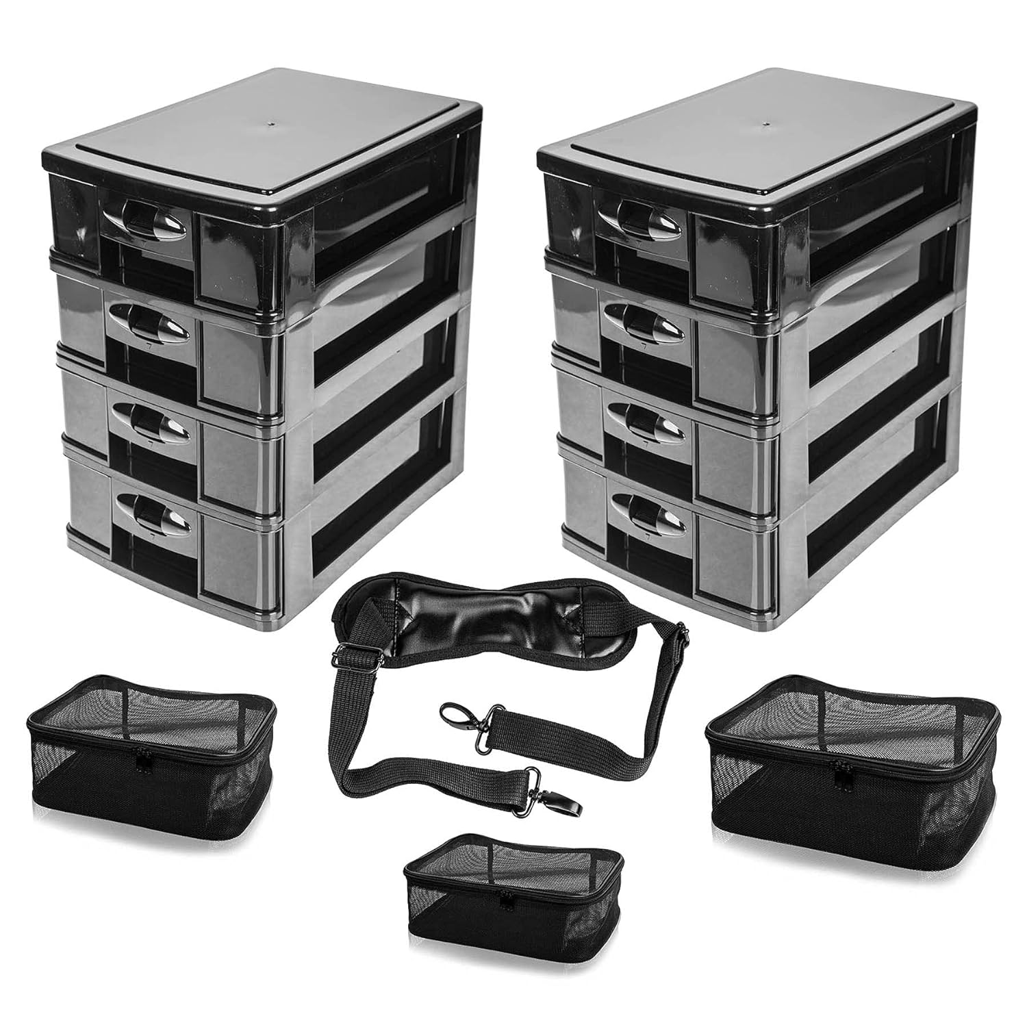 Kosmetikkoffer aus tiefschwarzem Vinyl mit Rollen – Reise-Make-up-Tasche