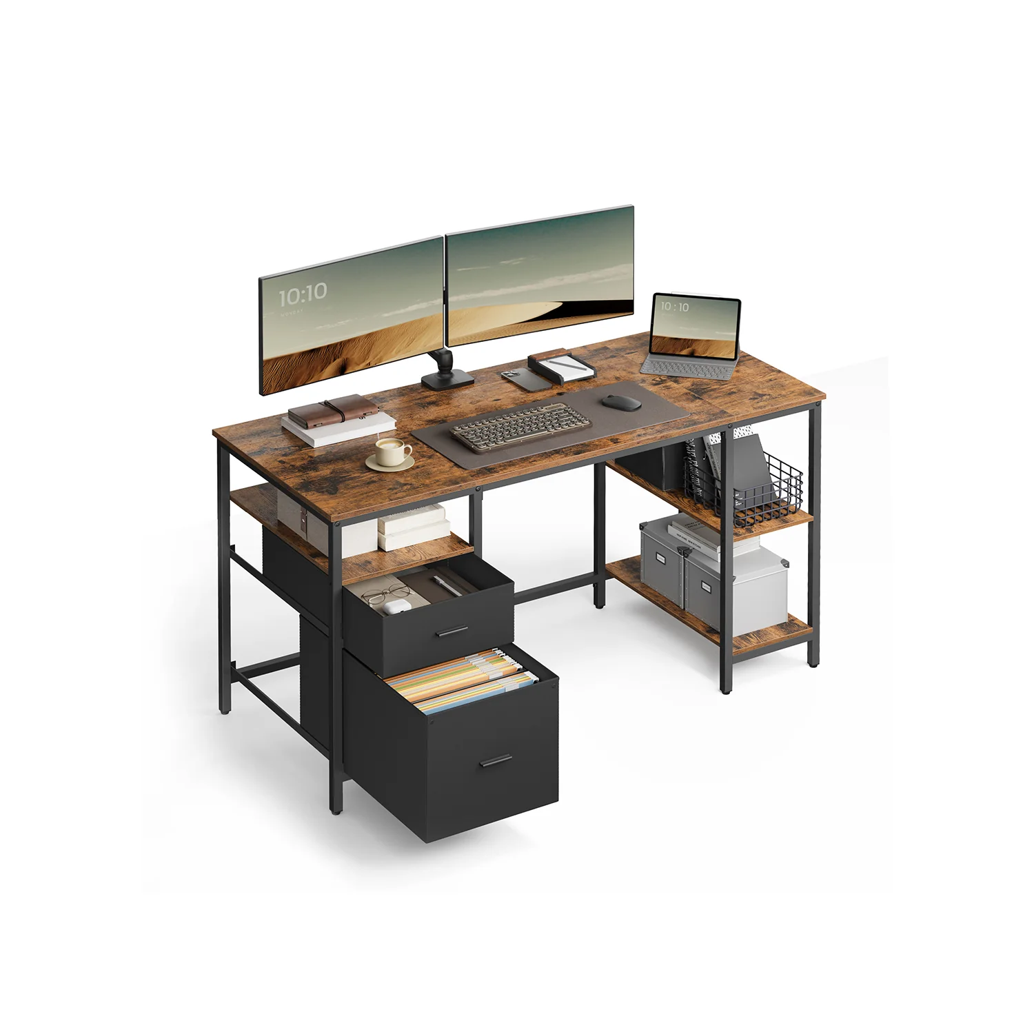 Schreibtisch mit 3 Regalböden und 2 Schubladen